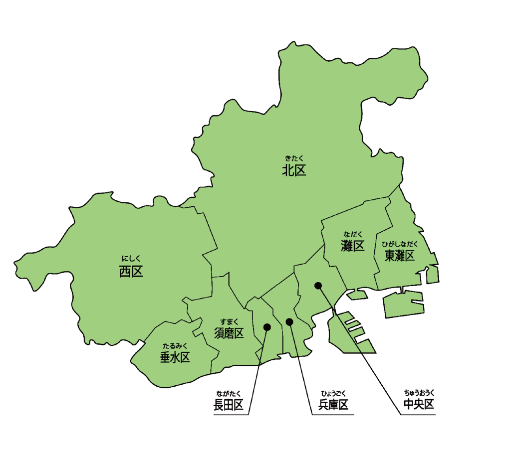 東灘区 |灘区 | 中央区 | 兵庫区 | 北区 |